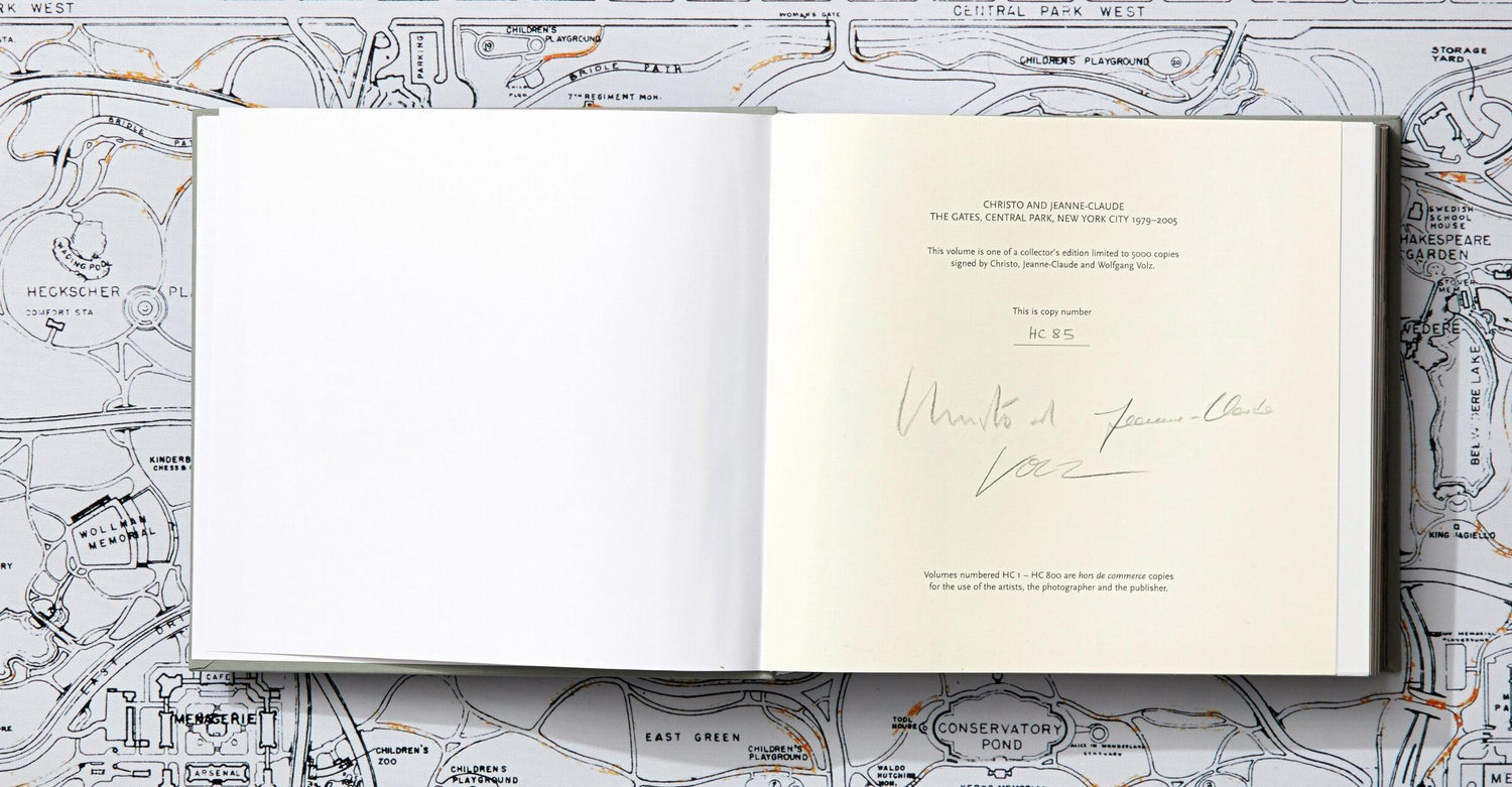 The third volume in our Christo and Jeanne-Claude Collector’s Edition series celebrates The Gates in New York City’s Central Park. Conceived by the artists themselves, this book documents the entire project from conception to realization, featuring over 100 drawings and collages, as well as more than 1,000 project photographs, and a souvenir piece of the artwork’s fabric.